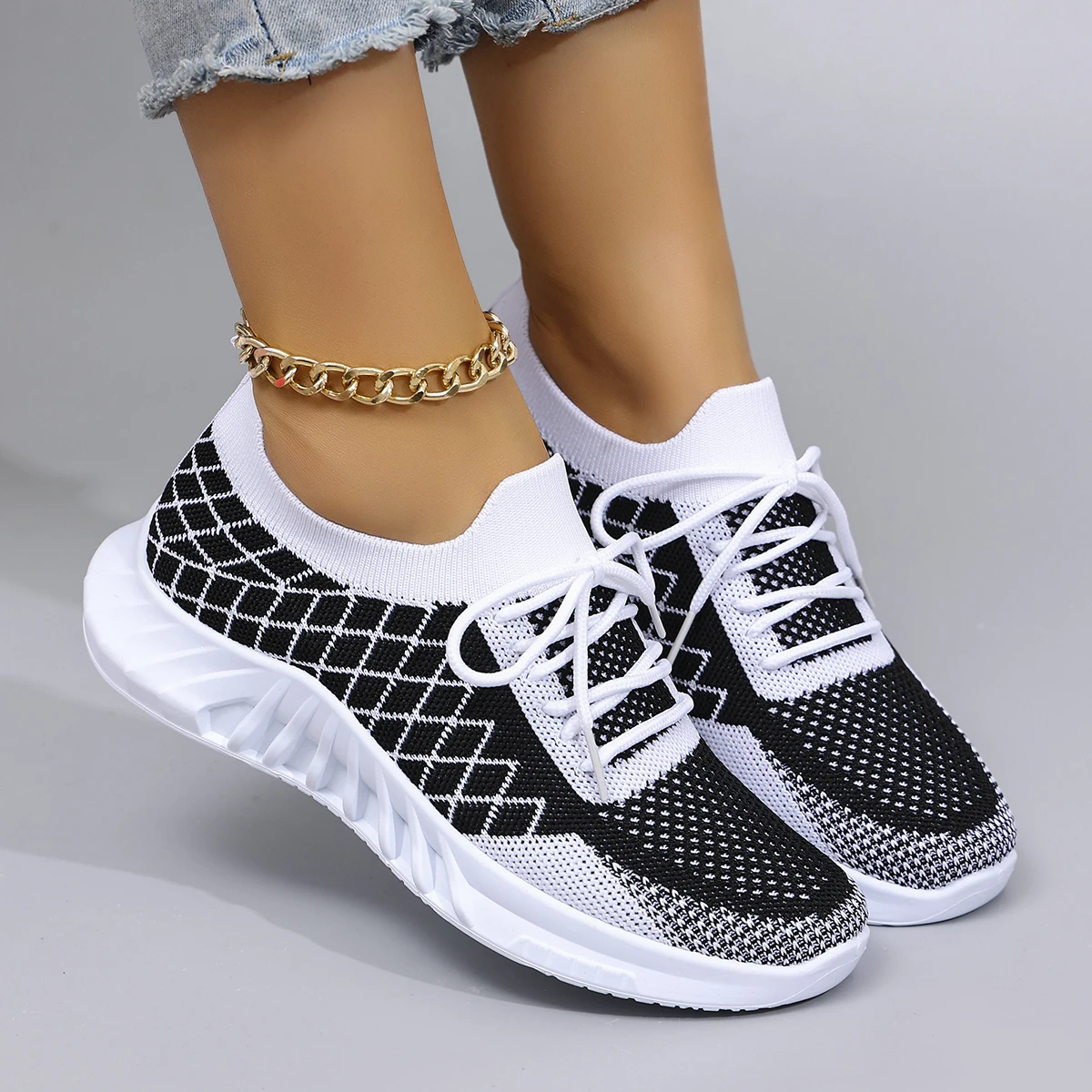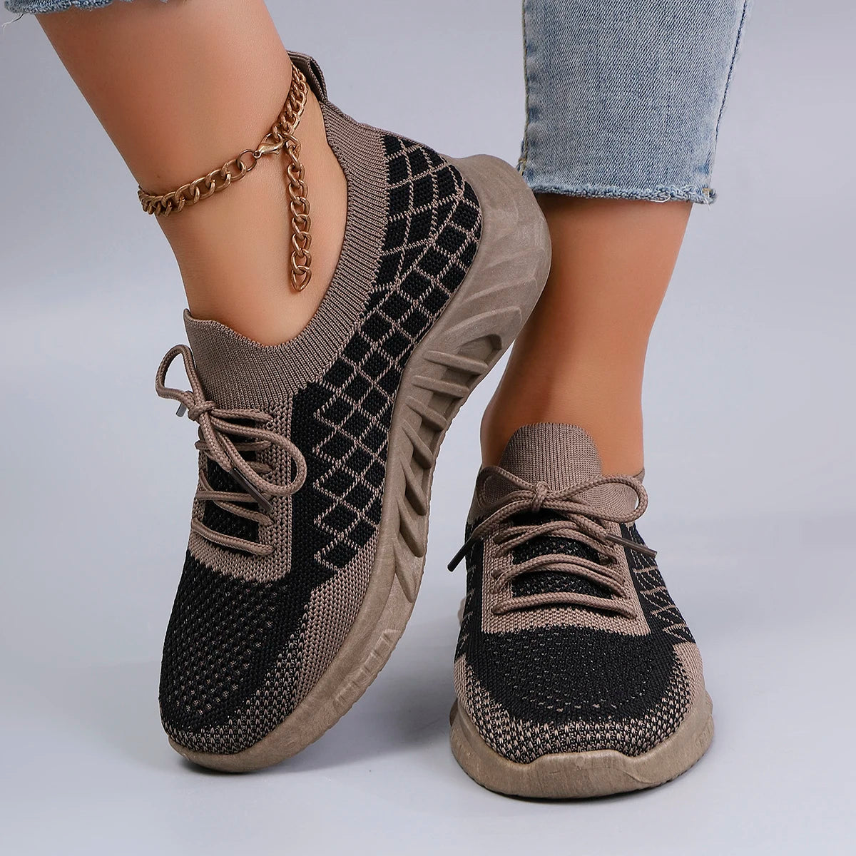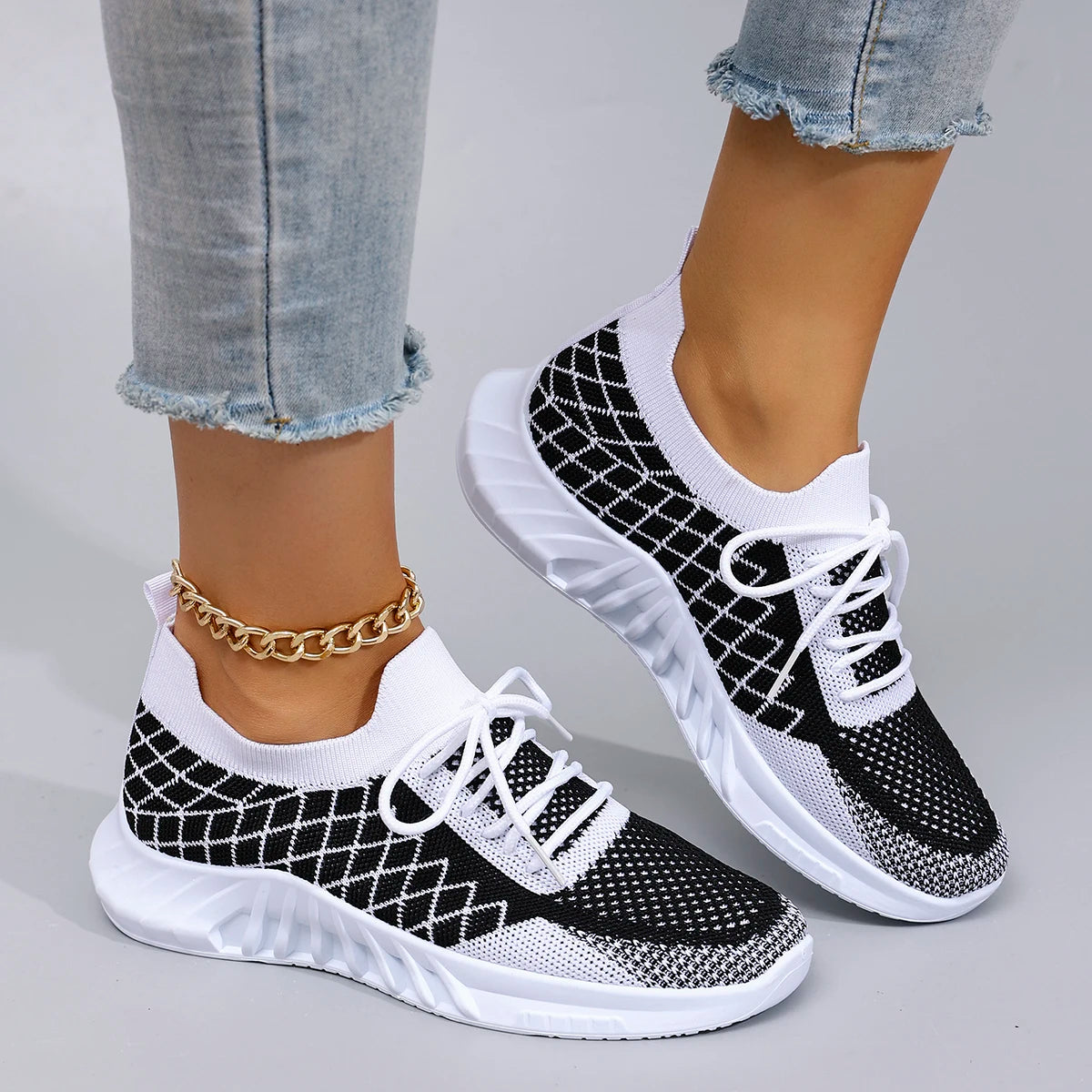 Built for comfort, styled for confidence. The Grid Lock – High-Style Athletic Sneakers feature breathable knit, strategic cushioning, and a fashion-forward silhouette designed to support your every move. Whether you're walking the block or owning your routine, these do it all.