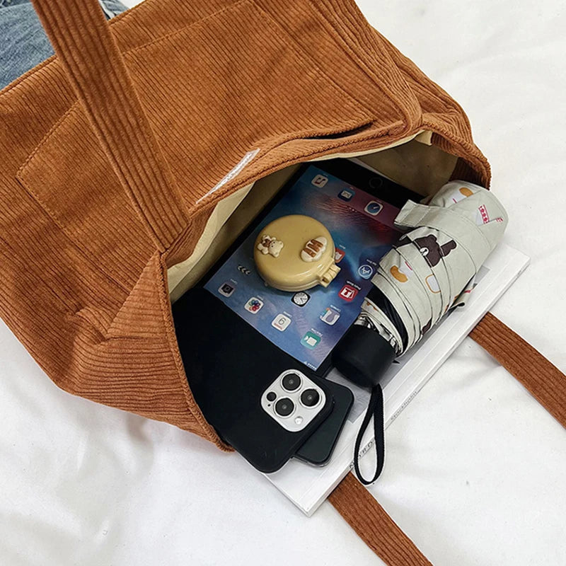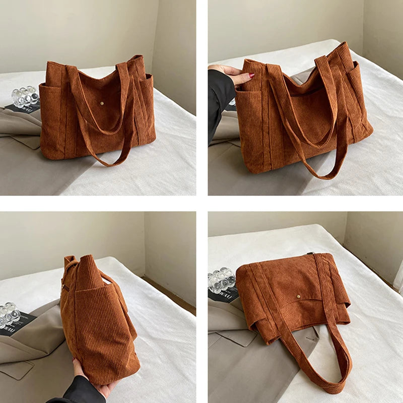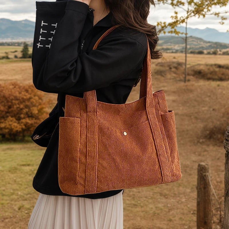 Elevated utility meets boutique comfort. The Jora Avenue Corduroy Tote reimagines the classic for a new era—lush, resilient corduroy, tailored lines, and artful structure. Subtle gold hardware and thoughtfully designed spacing make this bag a refined statement for work, weekend, or travel. Discover softness, sophistication, and durability—all in one.