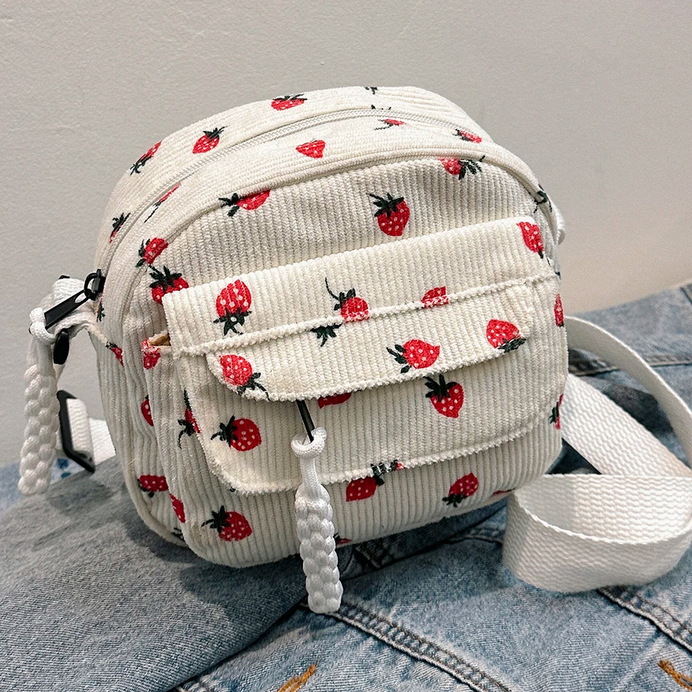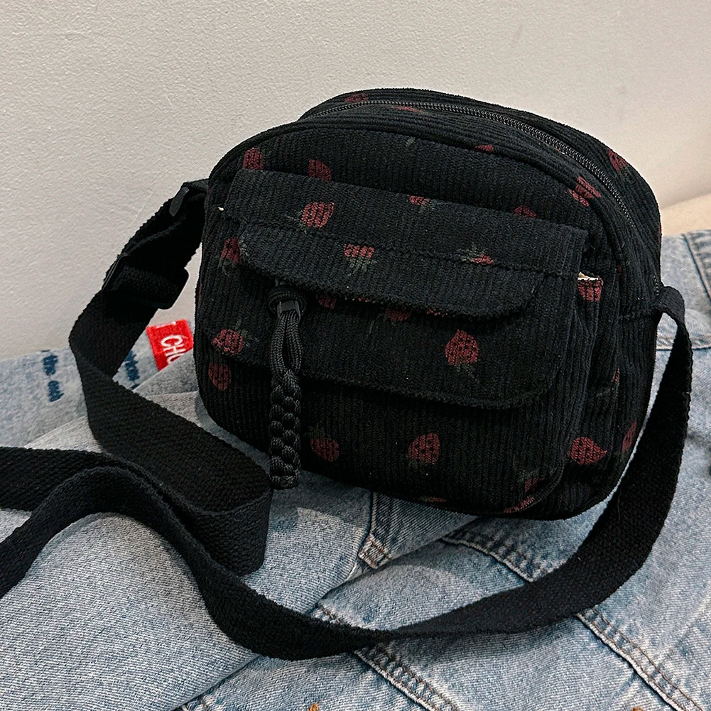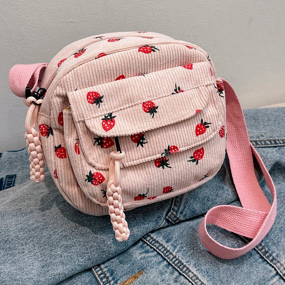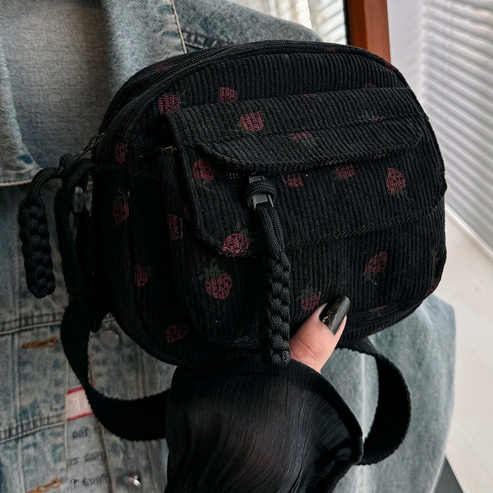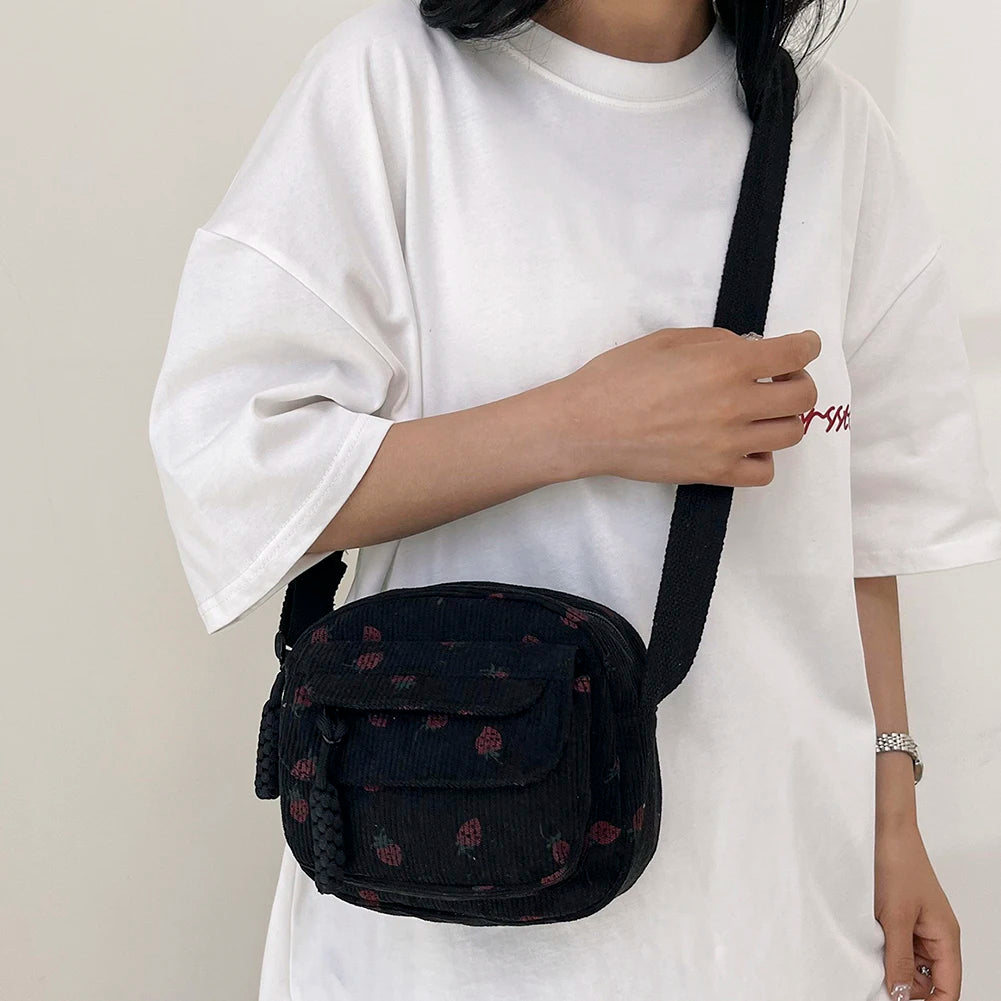 Indulge in the delightful textures of our Strawberry Sweetheart Crossbody Bag. Crafted with soft corduroy and adorned with a whimsical strawberry print, this bag adds a touch of playful elegance to your everyday style. It’s a small luxury that brings joy to your daily adventures.