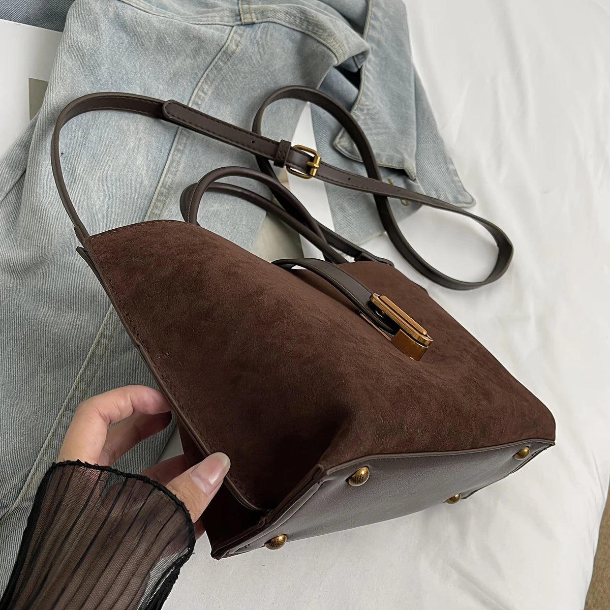 Small design sense daily retro large capacity tote bag fashion messenger bag classic casual solid color women's shoulder bag